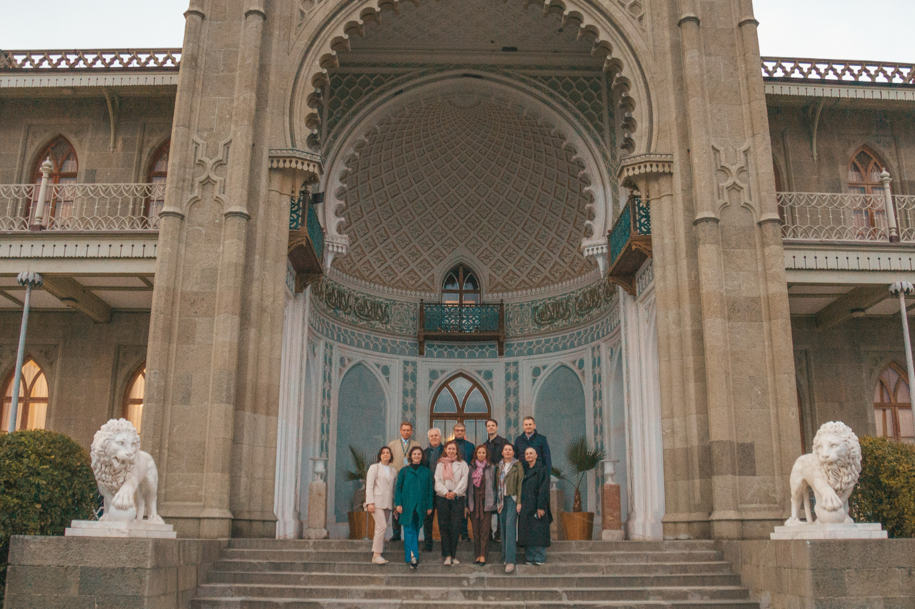 Для гостей была проведена экскурсия по основным залам Ливадийского дворца. На повестке дня звучали вопросы, касающиеся проведения запланированной реэкспозиции в бывшей императорской резиденции. Коллеги выразили свои мнения и предложения, связанные с предстоящими изменениями, которые направлены на сохранение и укрепление историко-культурного наследия. В ходе беседы с директором Ливадийского дворца-музея Ларисой Ковальчук затронута тема содержания и восстановления первоначального облика парковой зоны республиканского учреждения.