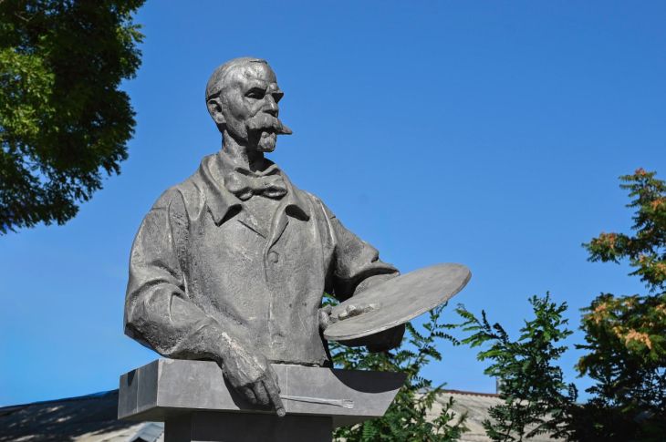 Николай Семенович Самокиш родился 25 октября 1860 года в бедной семье, где его воспитывал дед. Под впечатлением от предметов военных лет начал рисовать, развивая страсть к изображению военных сцен. В Петербургской академии художеств получил множество наград за свои работы. Звание академика ему было присвоено за полотно «Табун на водопое». В 1918 году Самокиш прибыл в Крым, где создал множество картин, включая «Купание красноармейцев в Евпатории» и «На пляже». После основания художественного училища в Симферополе в его честь, художник продолжил свою творческую деятельность, оставляя наставления будущим художникам.