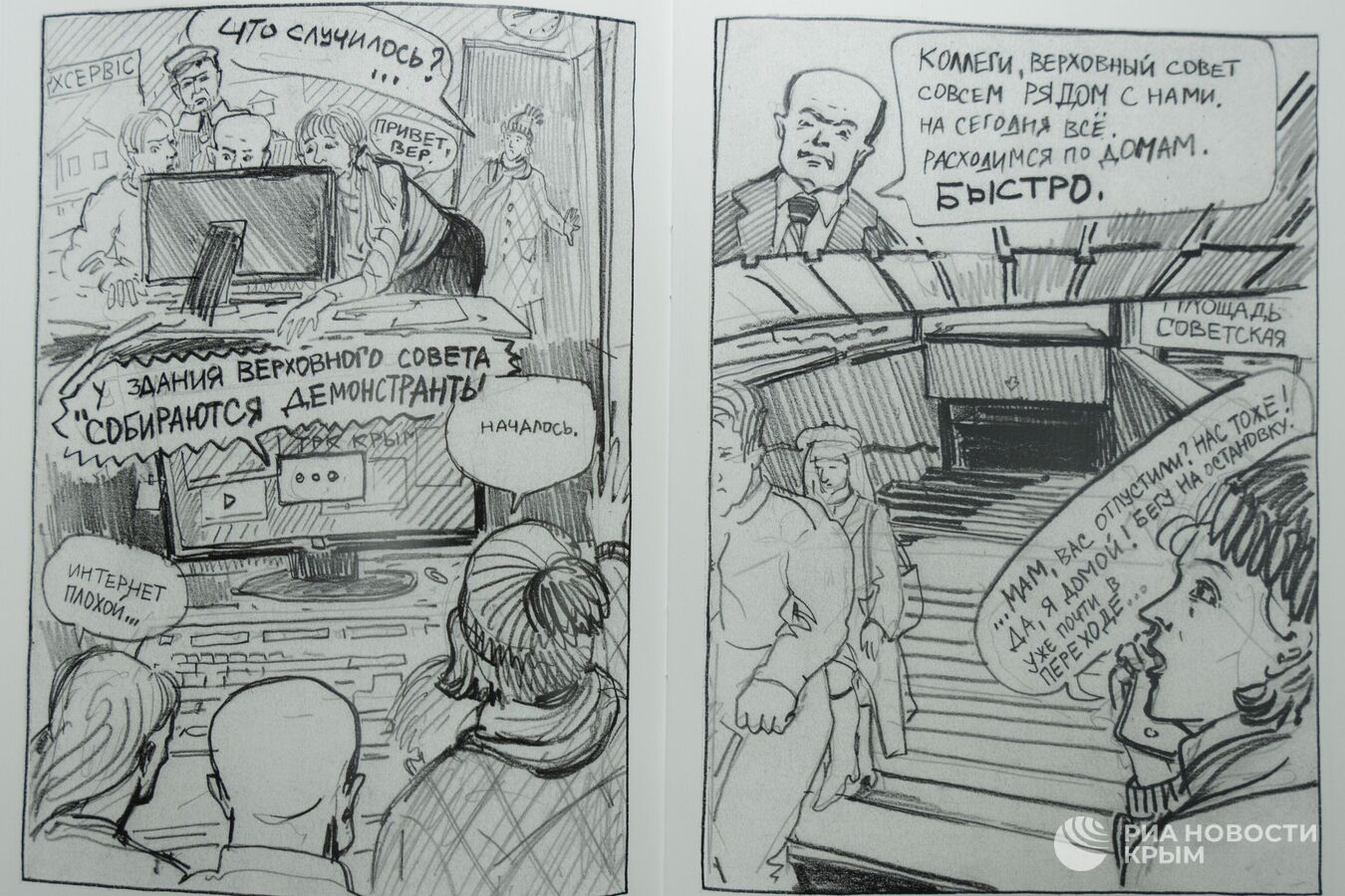 Одна из последних работ Веры – небольшой комикс, посвященный Крымской весне. Первый такой на полуострове, если не во всей России.– Желание его сделать было спонтанным. 26 февраля я его нарисовала после разговора с известным российским автором комиксов на историческую тематику Ольгой Лаврентьевой. Мы с ней вспоминали, кто где был в эти дни. Я ей рассказала историю, что 26 февраля 2014 года, уходя с работы, я шла через подземный переход в центре Симферополя и повстречала там группу под украинскими флагами, которые пытались захватить власть.