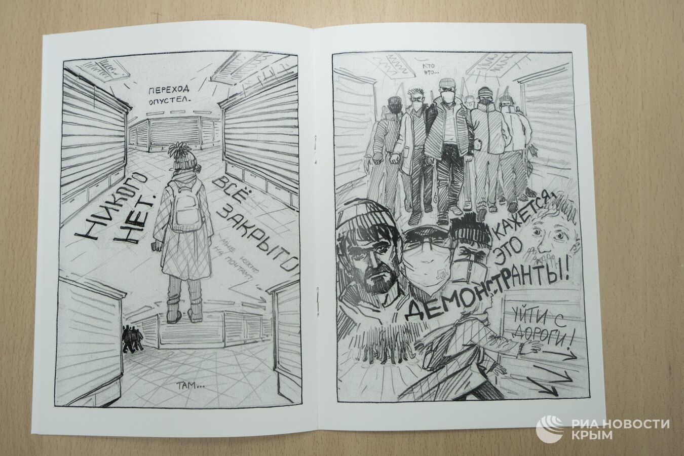 –У меня обычно книги – это сувенир, а вот "Переход" – так комикс называется – совсем не развлекательный. У нас принято ошибочно полагать, что комиксы – это черепашки ниндзя, мужики в цветных колготках, что-то такое, американское. На самом деле это достаточно широкая культура, и, кстати, не западная совсем: у нас на Руси в 14-15 веках появились лубочные картинки, которые гравировали и печатали. Это же тоже комикс.