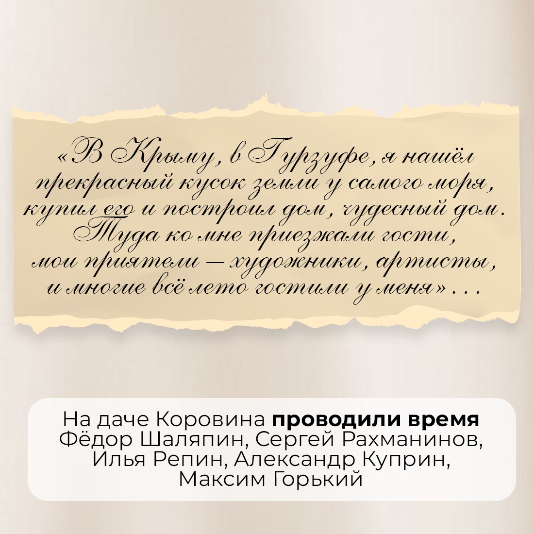 Какую роль сыграл полуостров в жизни и творчестве Константина Коровина – в наших карточках