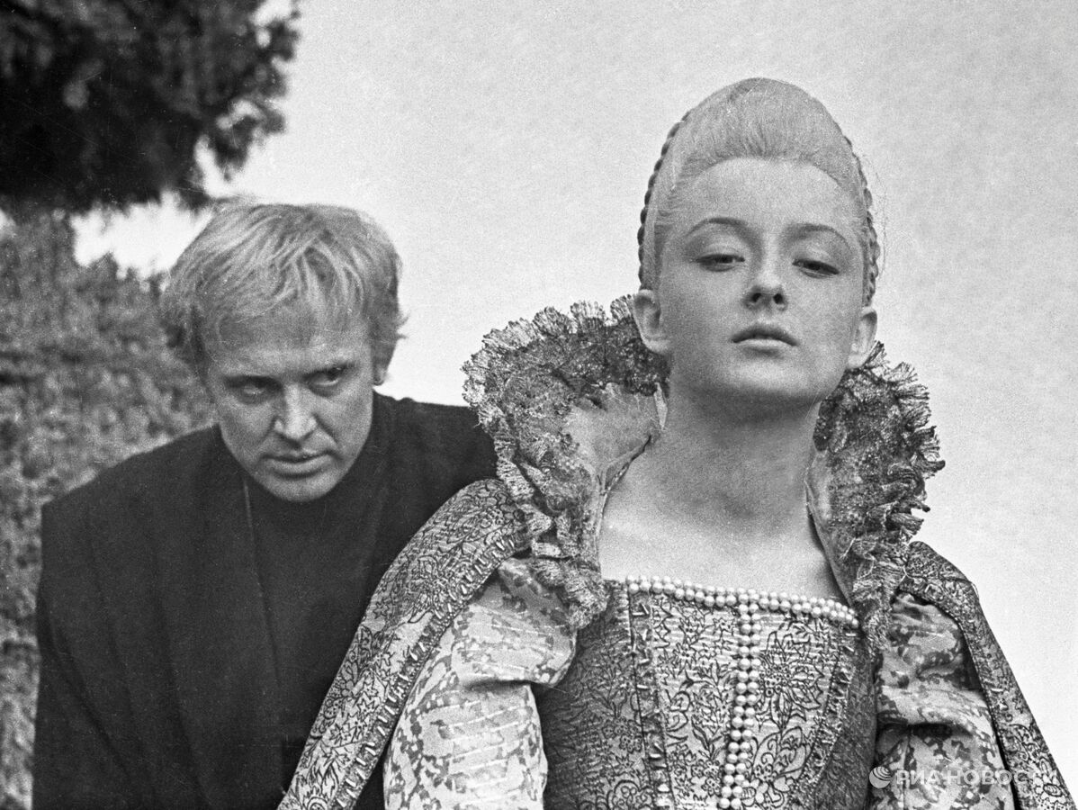 Анастасия Вертинская (справа) и Иннокентий Смоктуновский (слева) на съемках фильма "Гамлет"