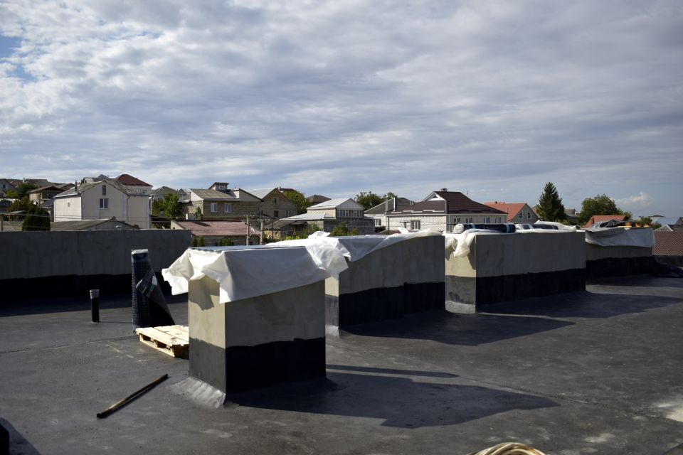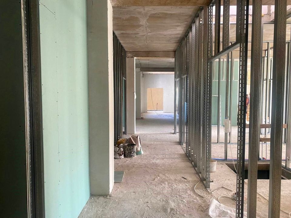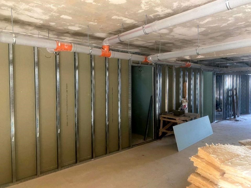 Сейчас на объекте ведётся устройство кровли, перегородок из гипсокартонных листов и электрических сетей. Также штукатурятся стены, разрабатывается грунт под подпорную стену-2 и под теплотрассу, осуществляется устройство водопровода и отопления, вынос электросетей.