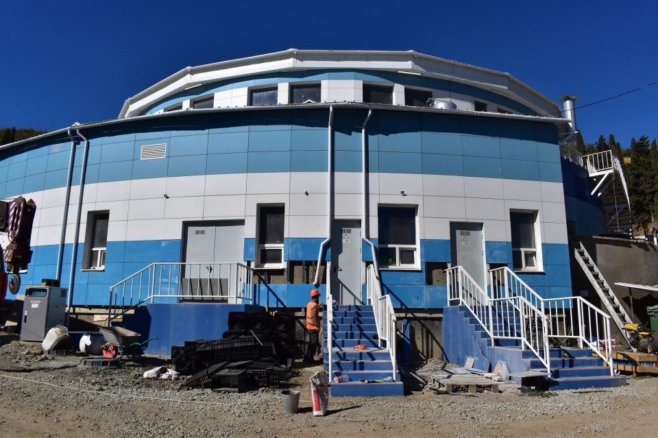 На текущий день завершены работы в здании ИБР, в приемной камере, в здании механической очистки, в ливневых очистных сооружениях и КНС, в административно-бытовом корпусе и пожарных резервуарах. Продолжаются работы по благоустройству территории (35%), возведение периметрального ограждения (завершено 70%).