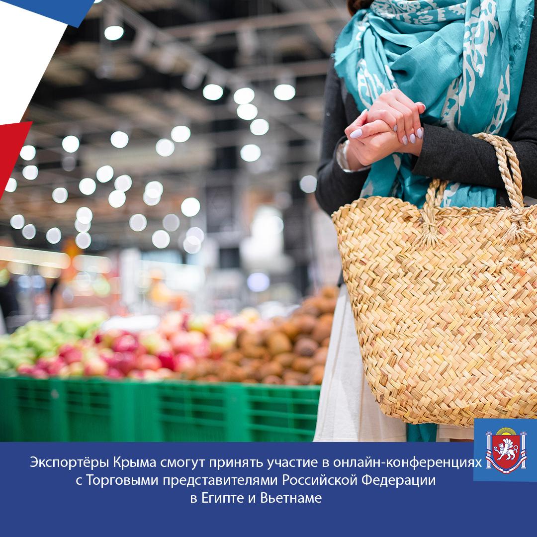 Экспортёры Крыма смогут принять участие в онлайн-конференциях с Торговыми представителями Российской Федерации в Египте и Вьетнаме.