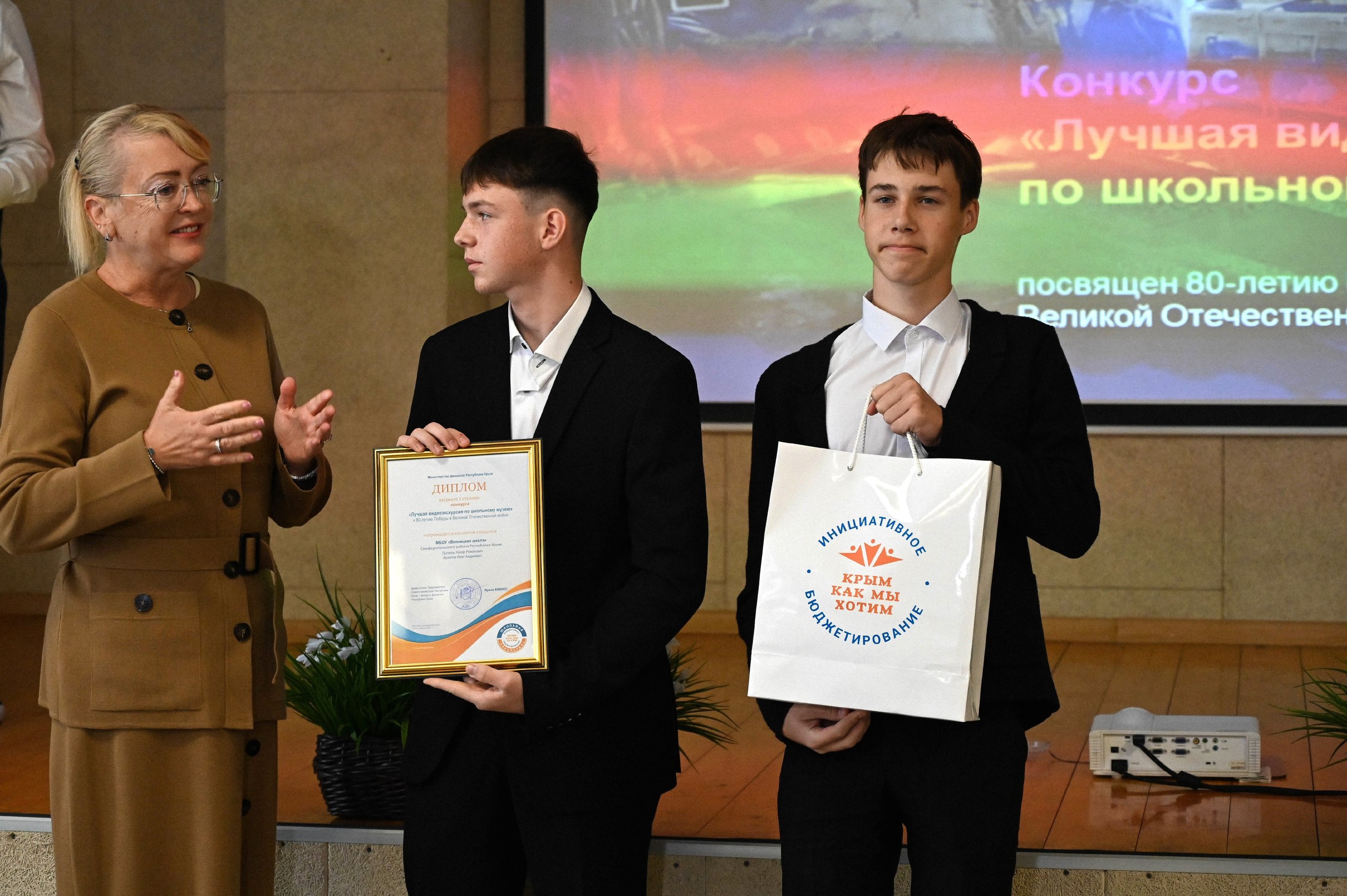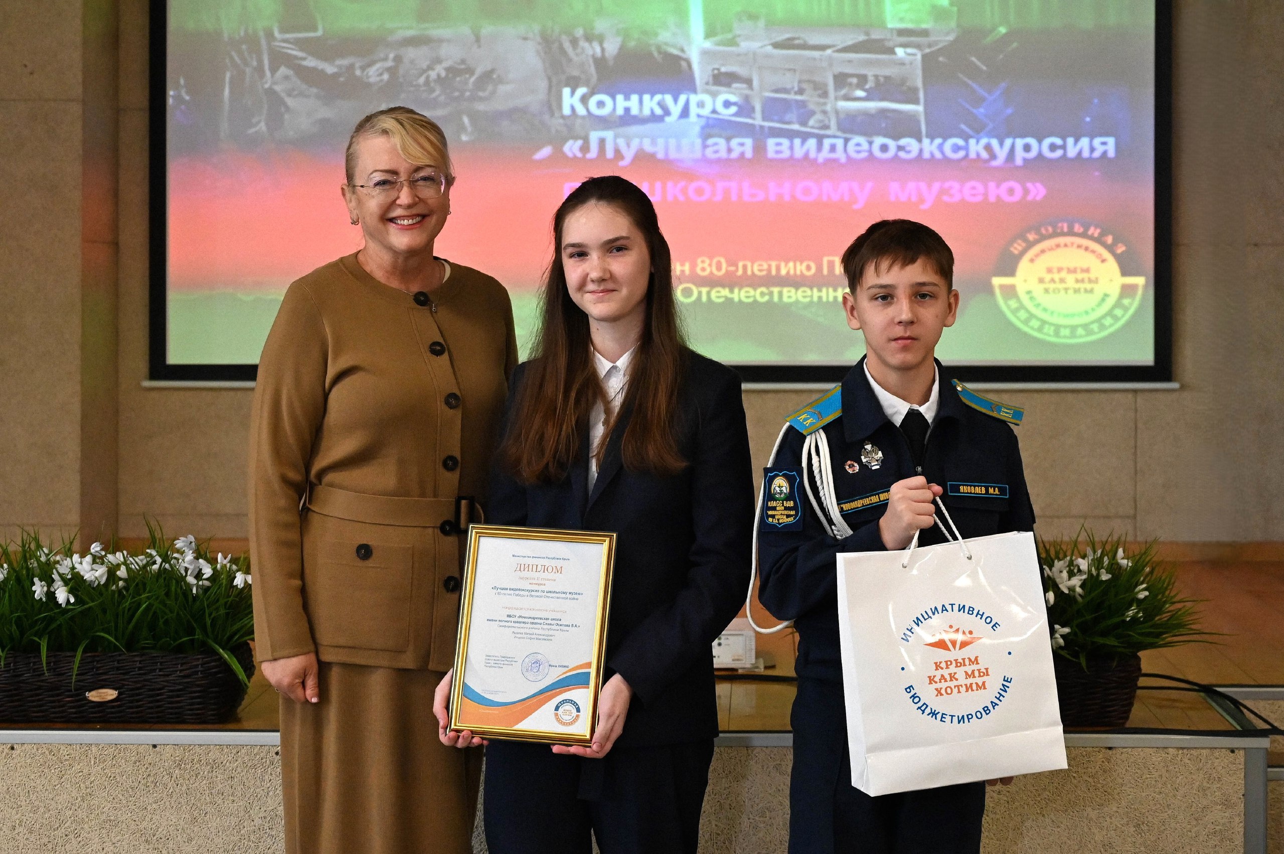Ирина Кивико наградила победителей творческого конкурса «Лучшая видеоэкскурсия по школьному музею», посвященного 80-летию Победы в Великой Отечественной войне.