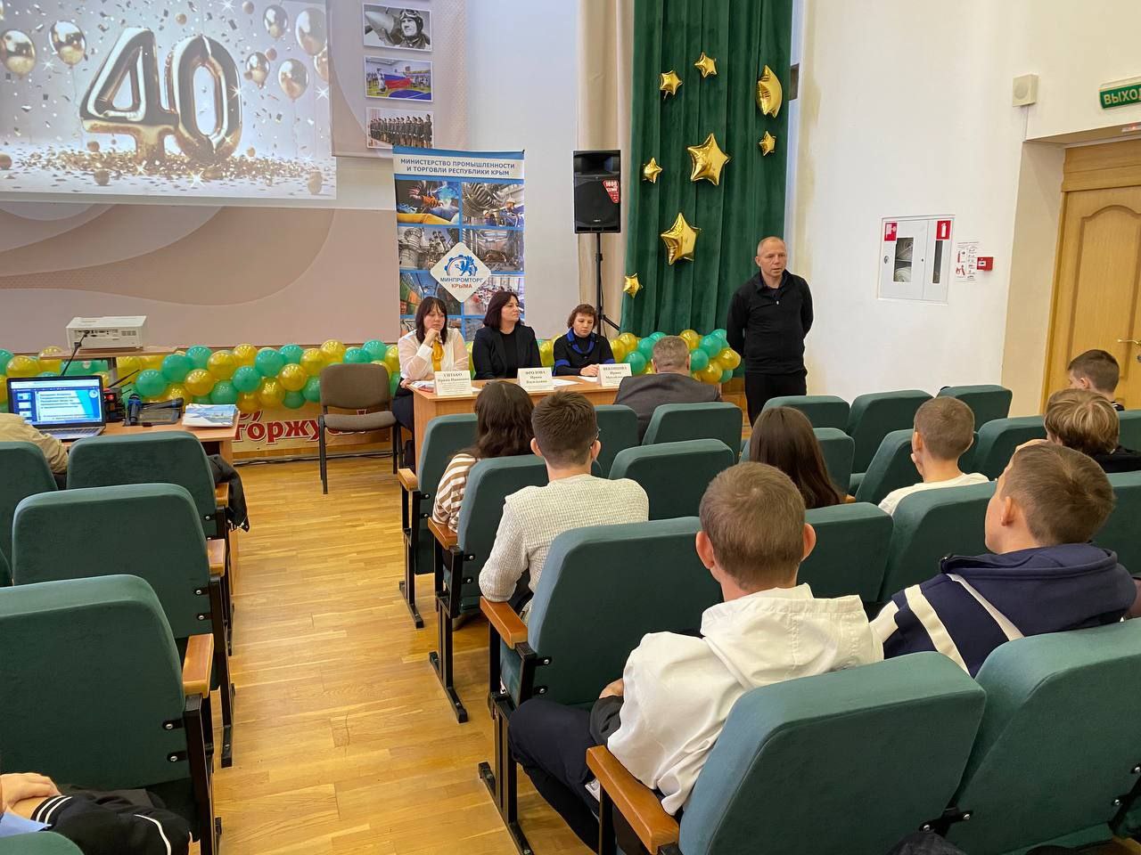 Сотрудники предприятий и органов власти рассказали школьникам о промышленном потенциале Республики Крым, востребованных специальностях и современных подходах к образованию.