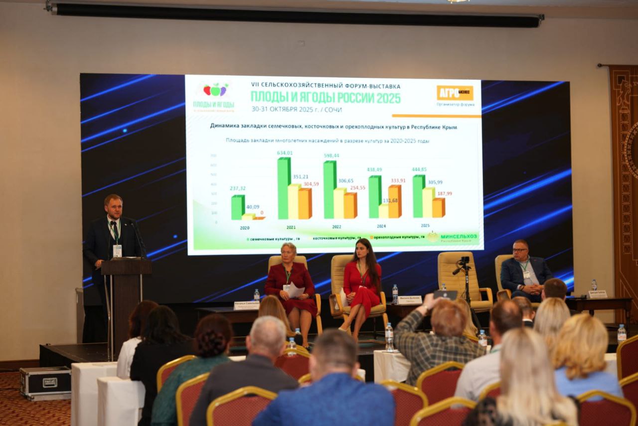 В Сочи на базе отеля «Богатырь» состоялся VII Сельскохозяйственный форум «Плоды и ягоды России – 2025» в котором принял участие заместитель министра сельского хозяйства Республики Крым Николай Тютюник.