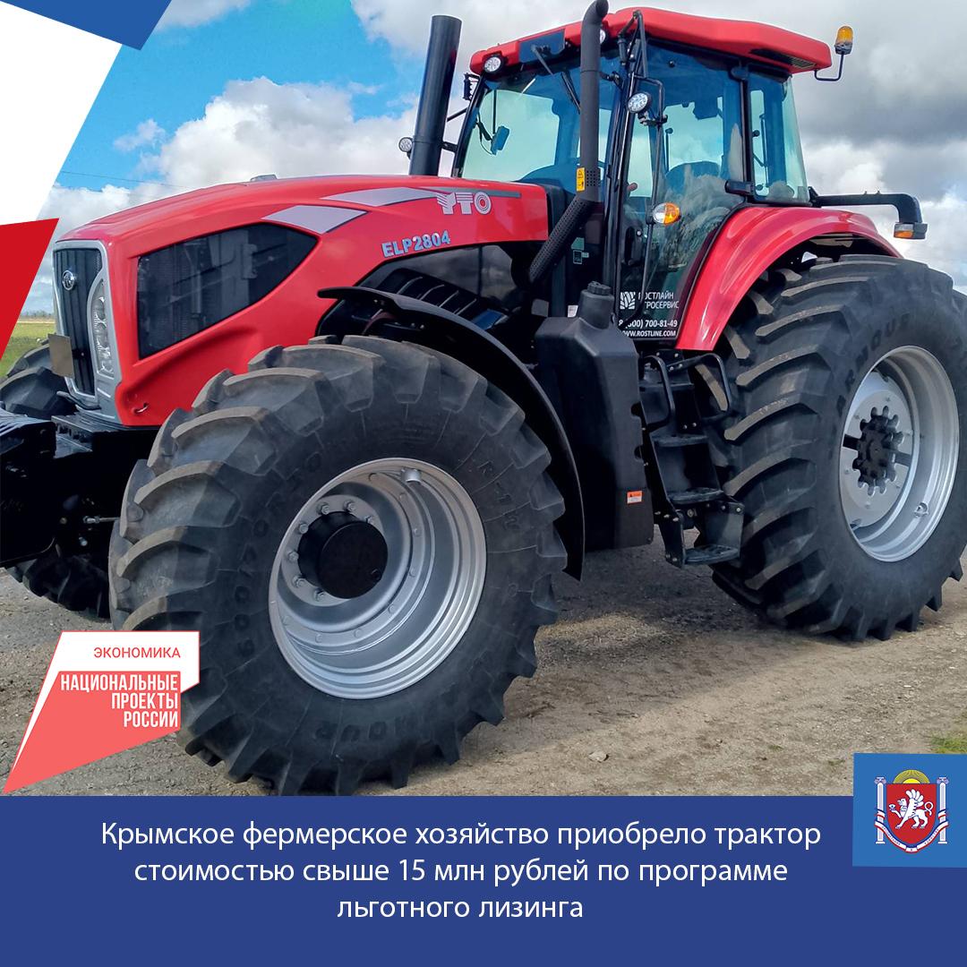 Агарное предприятие из Раздольненского района, занятое в сфере овощеводства, приобрело новый высокомощный трактор стоимостью 15,3 млн рублей по программе льготного лизинга.