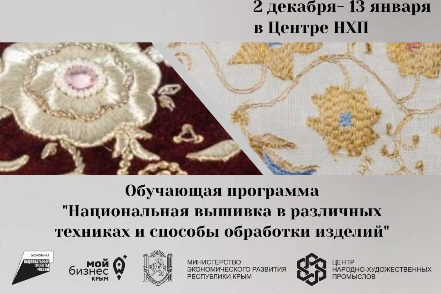 Центр народно-художественных промыслов Центра «Мой бизнес» Республики Крым в рамках реализации национального проекта «Эффективная и конкурентная экономика» открывает приём заявок на участие в обучающей программе: «Национальная вышивка в различных техниках и способы обработки изделий».