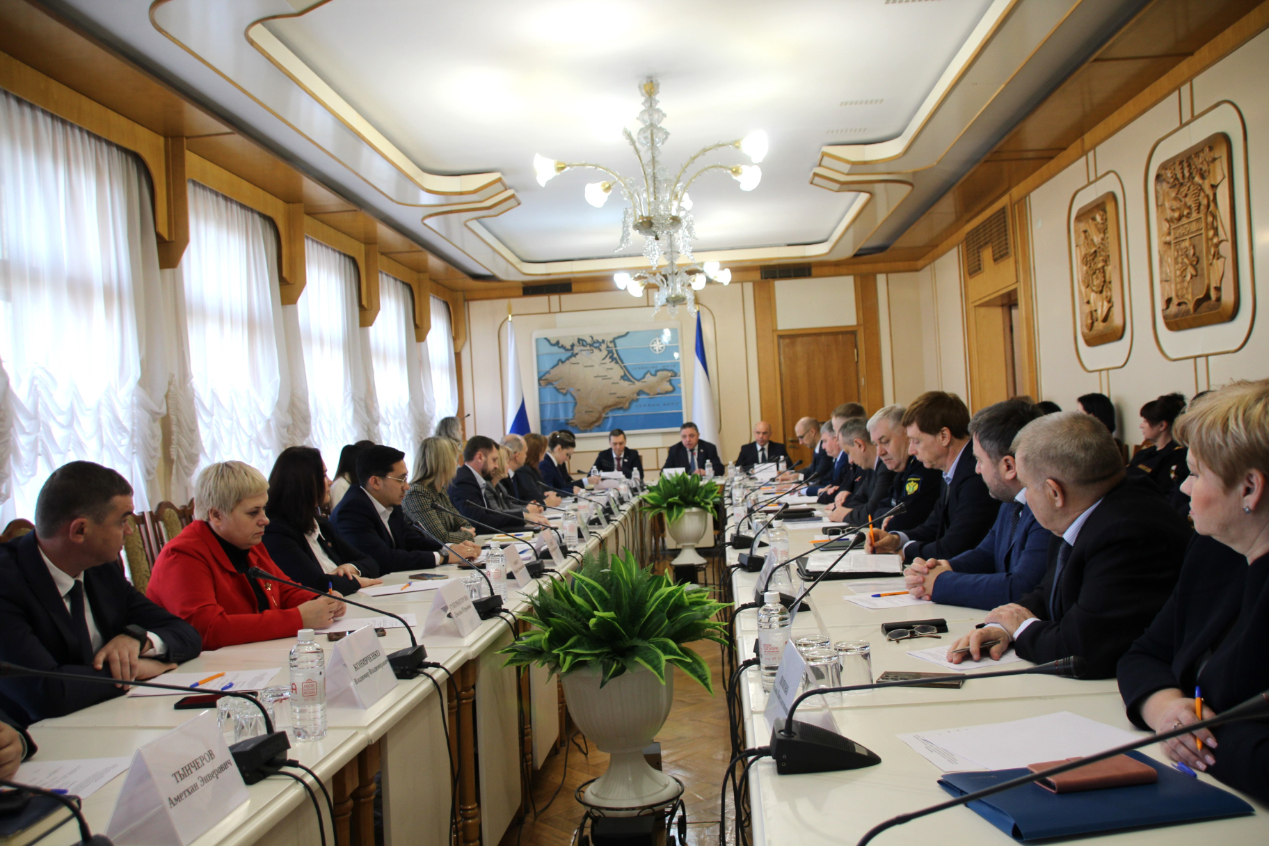 В рамках рабочего визита представителей Совета Федерации Российской Федерации в Крым в крымском парламенте состоялось расширенное совещание руководителями контрольных (надзорных) органов под руководством Председателя Комитета Совета Федерации Российской Федерации по Регламенту и организации парламентской деятельности Вячеслава Тимченко с участием членов Комиссии Совета Федерации по мониторингу законодательства РФ в сфере государственного контроля (надзора) и муниципального контроля в Российской Федерации, прокурора Республики Крым Олега Камшилова, уполномоченного по защите прав предпринимателей в Республике Крым Светланы Лужецкой, представителей органов исполнительной власти и муниципальных образований.