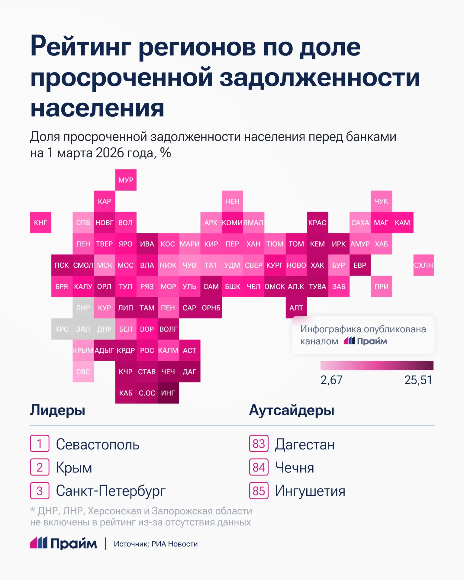А самые дисциплинированные заемщики проживают в Севастополе и Крыму.