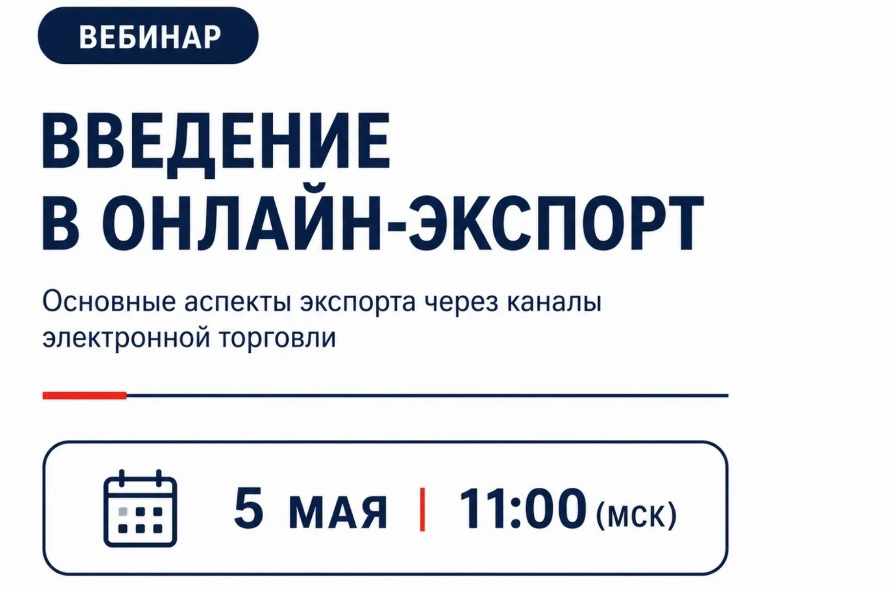 Мероприятие пройдёт 5 мая на онлайн-платформе Российского экспортного центра. Начало в 11:00. Ссылка для регистрации: https://www.exportcenter.ru/events/843268/