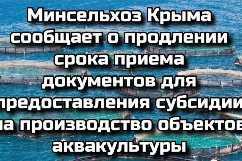 Министерство сельского хозяйства Республики Крым сообщает о продлении срока приема документов для предоставления субсидии на возмещение части затрат, связанных с производством объектов аквакультуры по 1 октября 2025 года. Отбор...