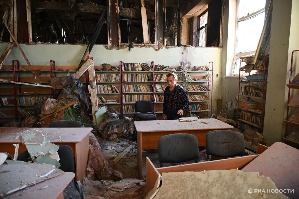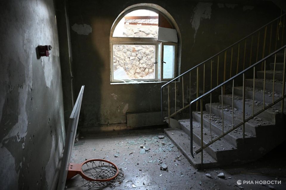 На фото: разрушенный актовый зал форосской школы.