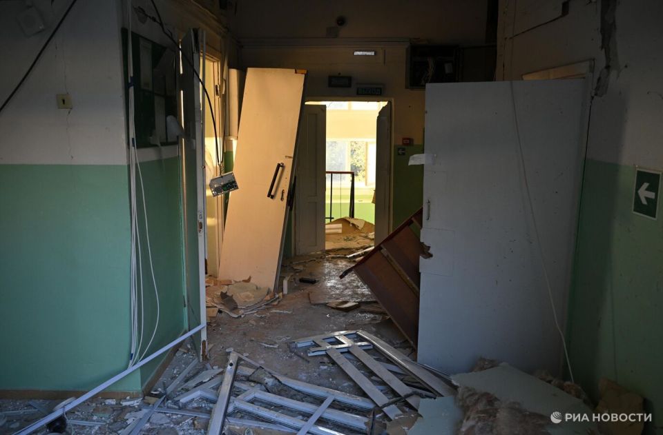 На фото: последствия удара в школе в Форосе.