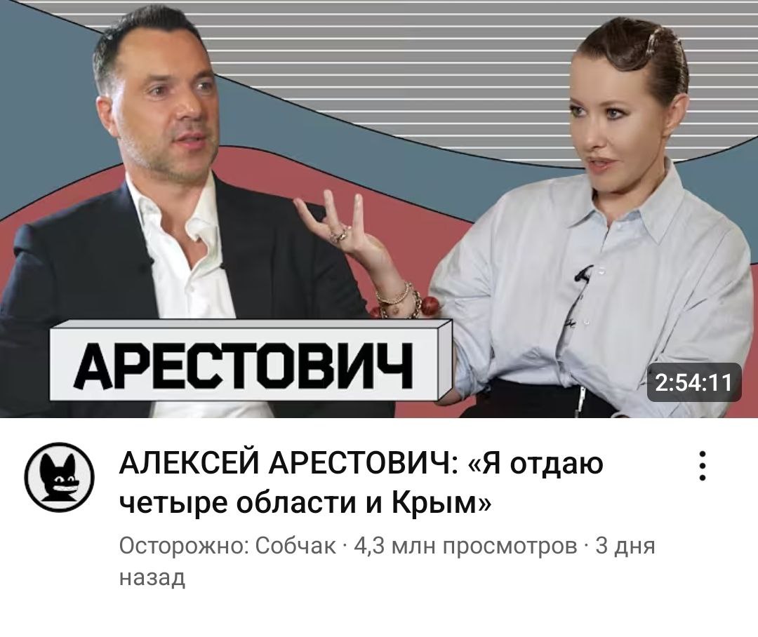 Арестович* демонстрирует очередной из своих 50 оттенков хамелеона. То этот нарцисс с барского плеча отдавал 4 волости и Крым, теперь передумал: