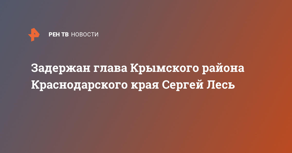 Задержан глава Крымского района Краснодарского края Сергея Лесь. Об этом 11 октября сообщил источник РЕН ТВ.