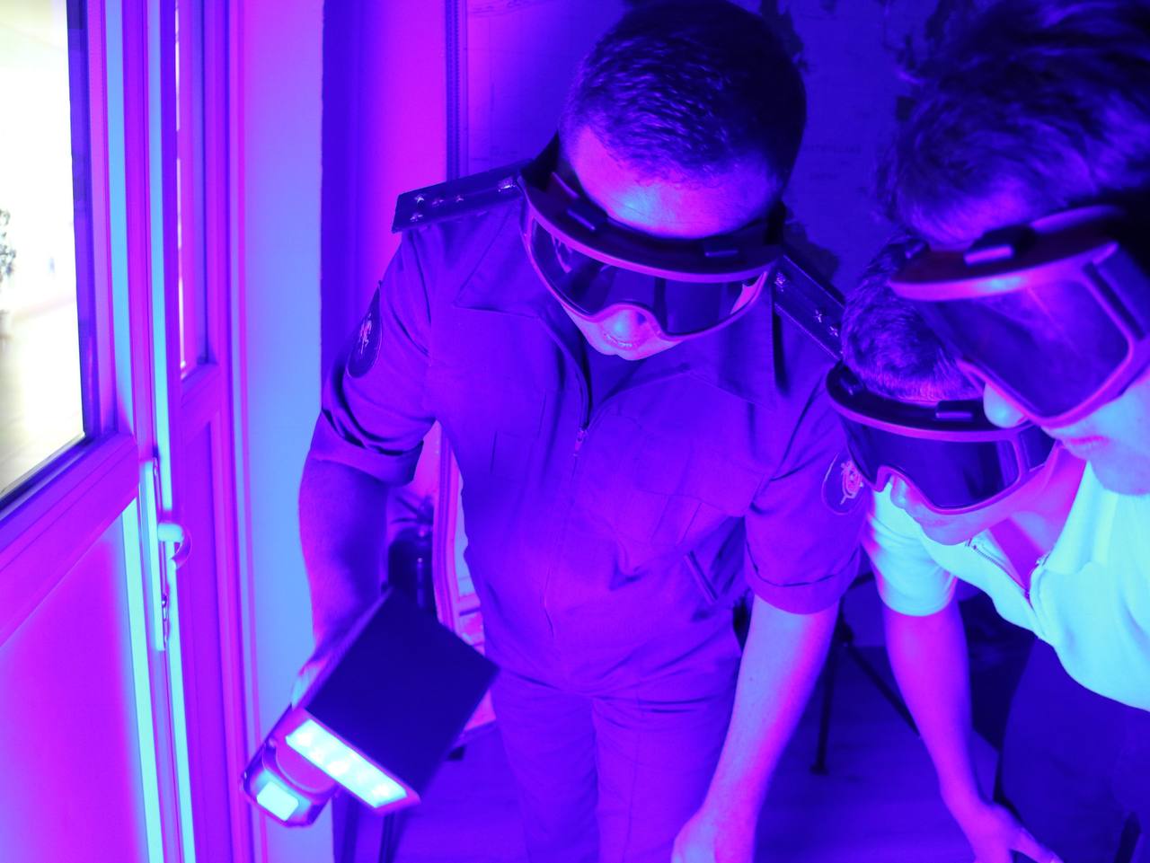 Под руководством офицеров-наставников школьники с помощью источника криминалистического света и средств индивидуальной защиты самостоятельно осмотрели территорию. Особый интерес вызвали особенности процедуры проверки на полиграфе. Наставники рассказывали ребятам – как правильно применять ту или иную технику, а также конкретные примеры из своей практики.
