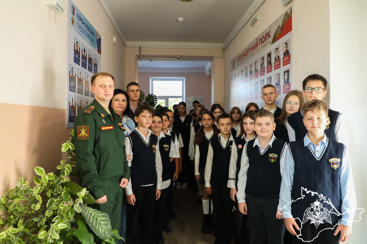В симферопольской Средней общеобразовательной школе № 13 имени А. Невского заместитель начальника Главного управления Росгвардии по Республике Крым и городу Севастополю по военно-политической работе полковник Михаил Колосов принял участие в торжественной линейке, посвященной проекту «Герои России – гордость Крыма».