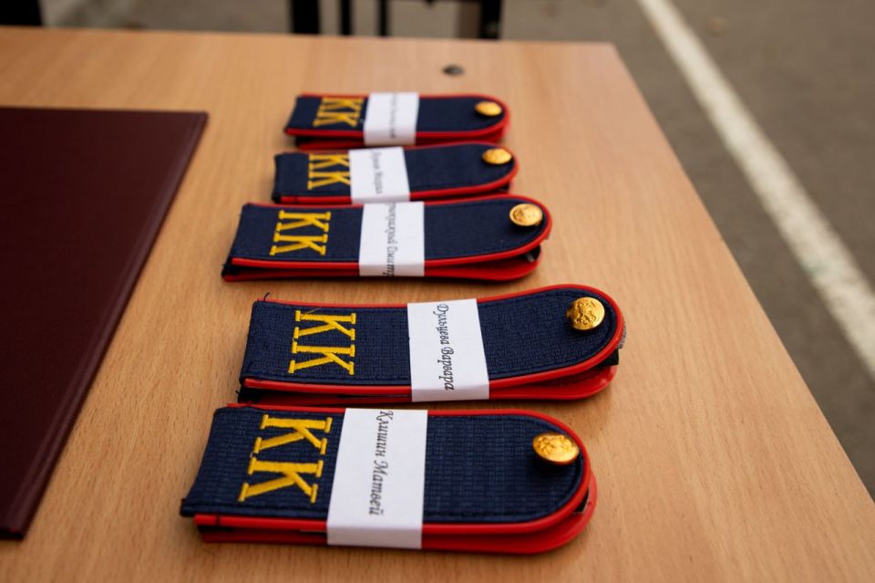 В торжественной обстановке Жанна Данилина вручила четырём кадетам российские паспорта. А двадцать кадет перед строем пообещали быть честными и верными товарищами, строго выполнять кадетский устав, прилежно учиться и быть преданными Отечеству. После ритуала приведения к Клятве и Обещанию кадеты получили нагрудные знаки, а старшие из них – свои первые в жизни погоны.