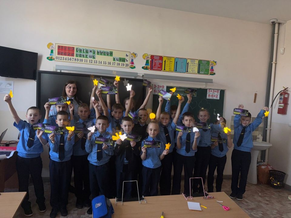 В результате у всех получились оригинальные наклейки, которыми дети пообещали поделиться с друзьями и близкими.