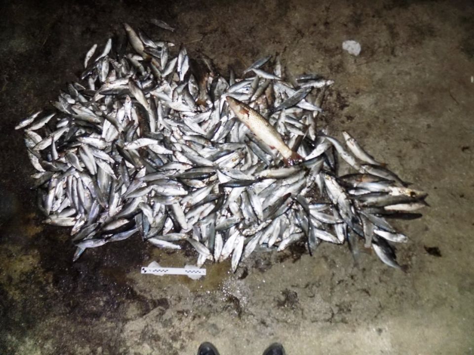 В ходе осмотра места происшествия следственно-оперативная группа изъяла весельную лодку, рыболовную сеть и 1109 экземпляров рыбы кефали-сингиль.