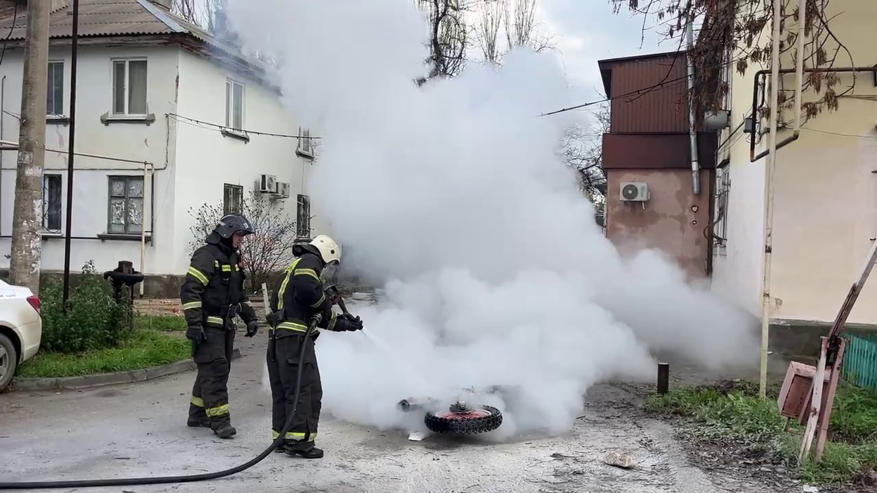 Огнеборцы МЧС России в Феодосии потушили мотоцикл
