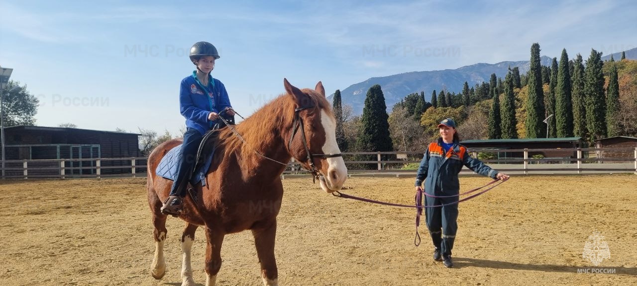 Дети познакомились с сотрудниками и деятельностью Южного конно-кинологического спасательного центра МЧС России, крымский филиал которого расположен в Международном детском центре. Артековцы получили первый опыт ухода за лошадьми и верховой езды.