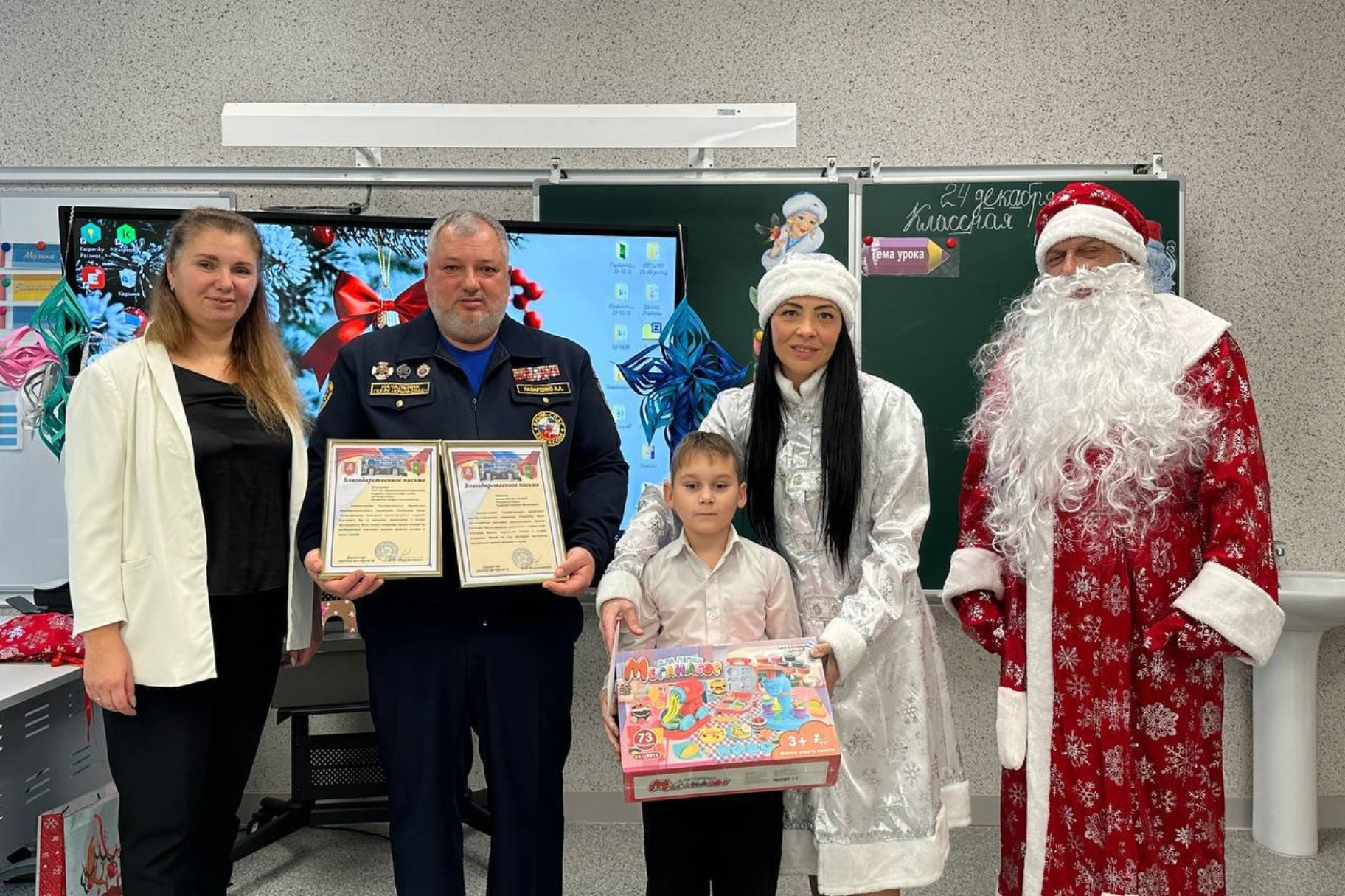 Мальчик пожелал получить набор для творчества и билеты в кино, и именно это желание было исполнено. Поздравить детей с наступающим Новым Годом пришел начальник ГКУ РК "КРЫМ-СПАС" Андрей Назаренко, а также любимые персонажи — Дед Мороз и Снегурочка. Они провели праздничные игры, водили хороводы и пели песни.