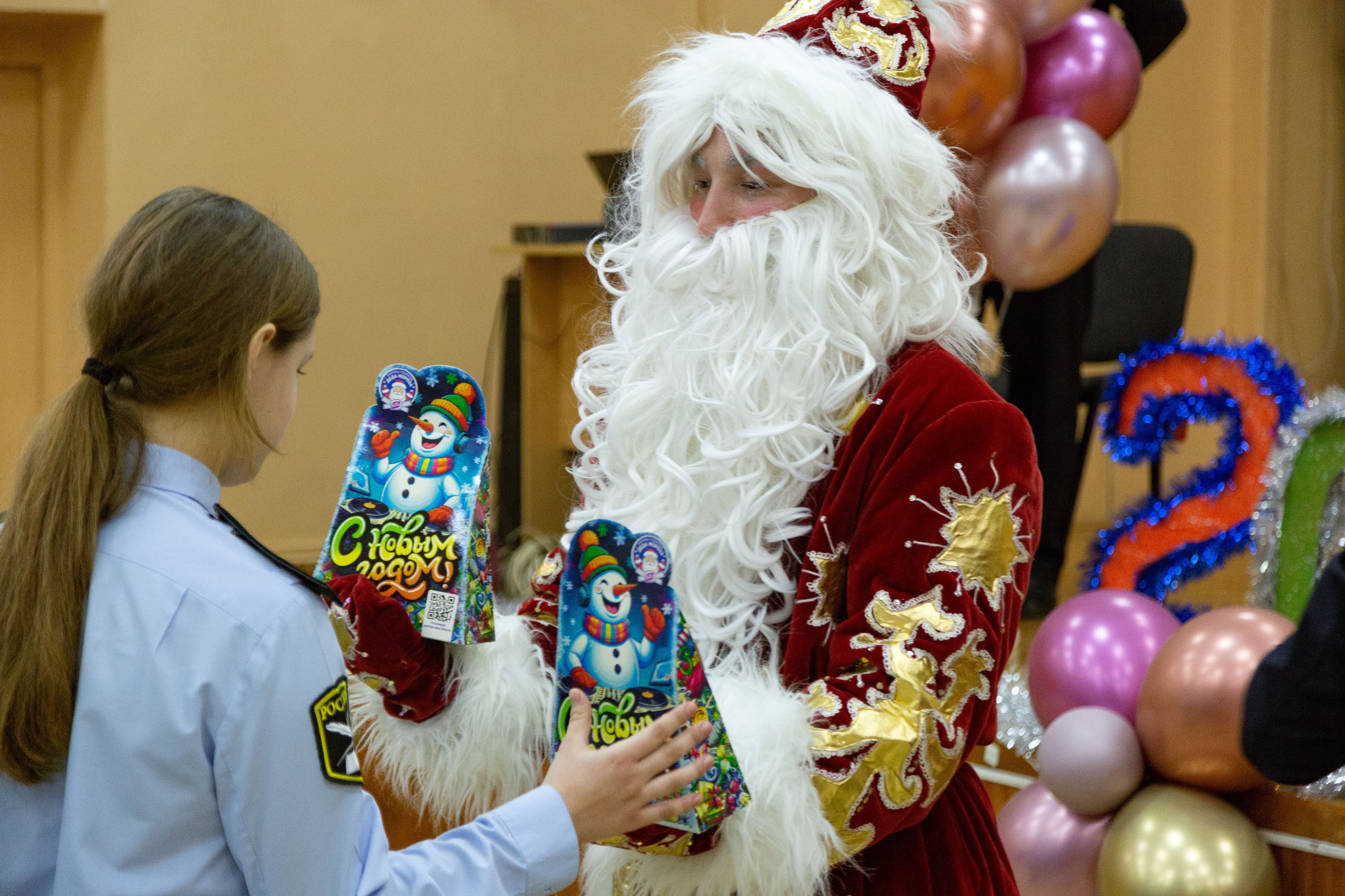 В рамках Всероссийской акции «Полицейский Дед Мороз» заместитель Министра внутренних дел по Республике Крым, полковник полиции Василий Гостев и помощник Министра, полковник внутренней службы в отставке Инна Никитина посетили кадетские классы МБОУ СОШ № 28 города Симферополя, чтобы лично поздравить ребят с наступающими новогодними праздниками.