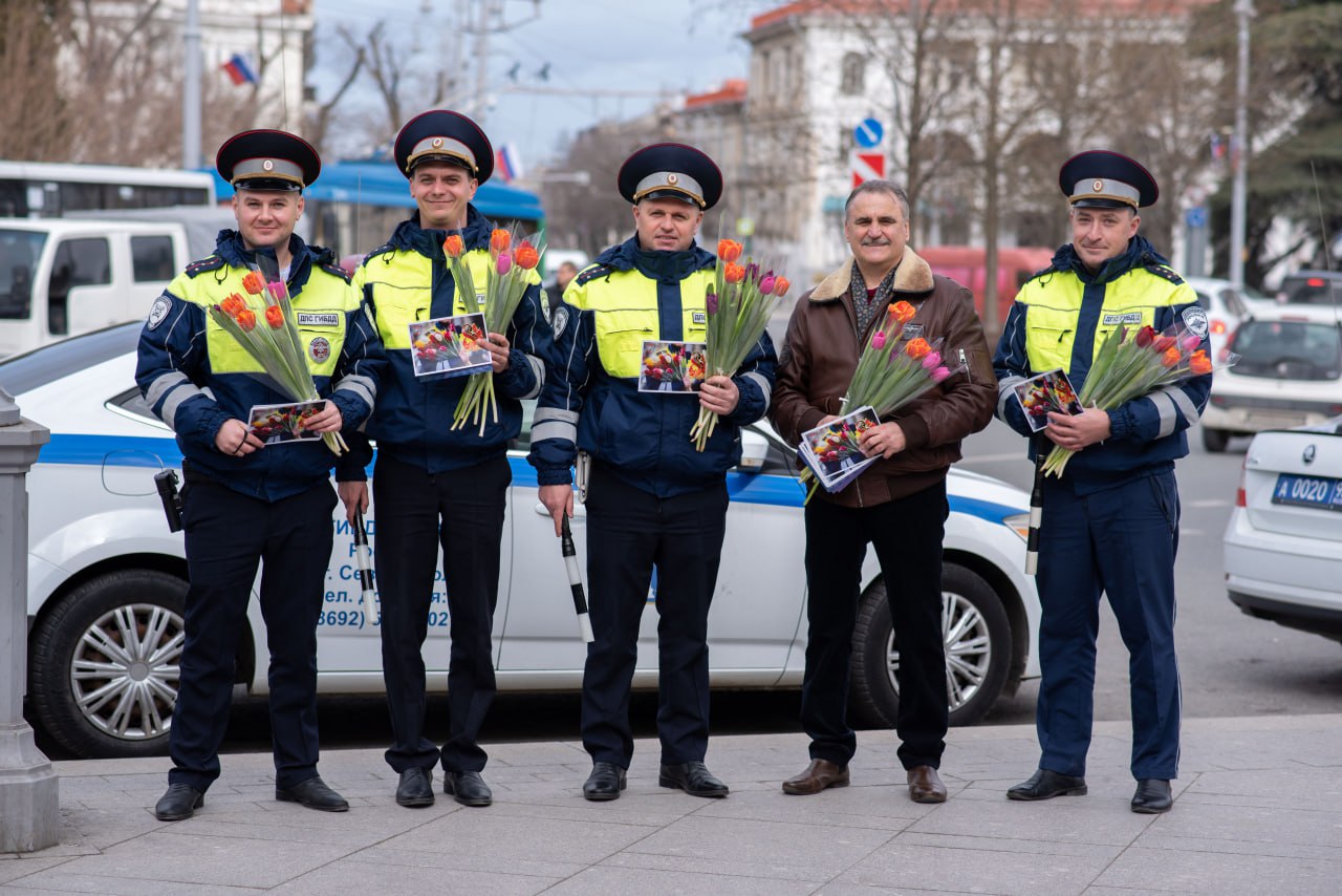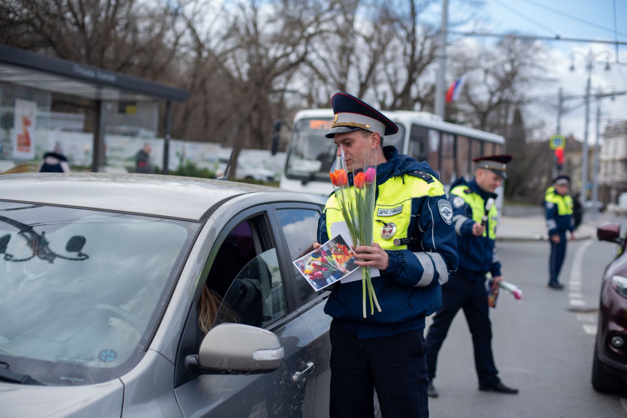 На центральных площадях Севастополя необычные патрули останавливали девушек-водителей, но вместо привычной проверки документов автоинспекторы с искренними улыбками вручали им весенние цветы, поздравительные открытки и тематические памятки по безопасности дорожного движения.