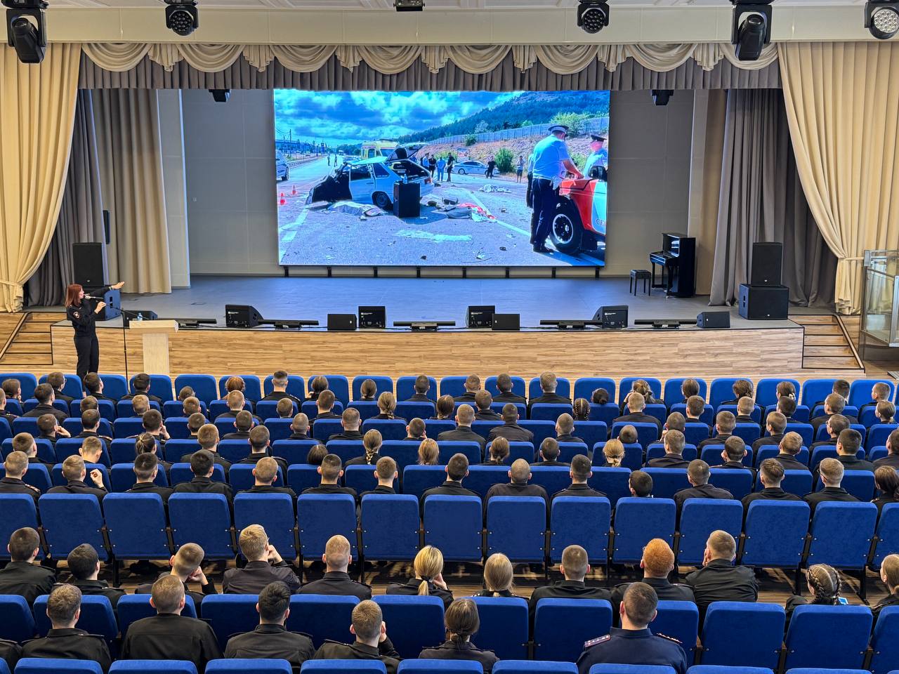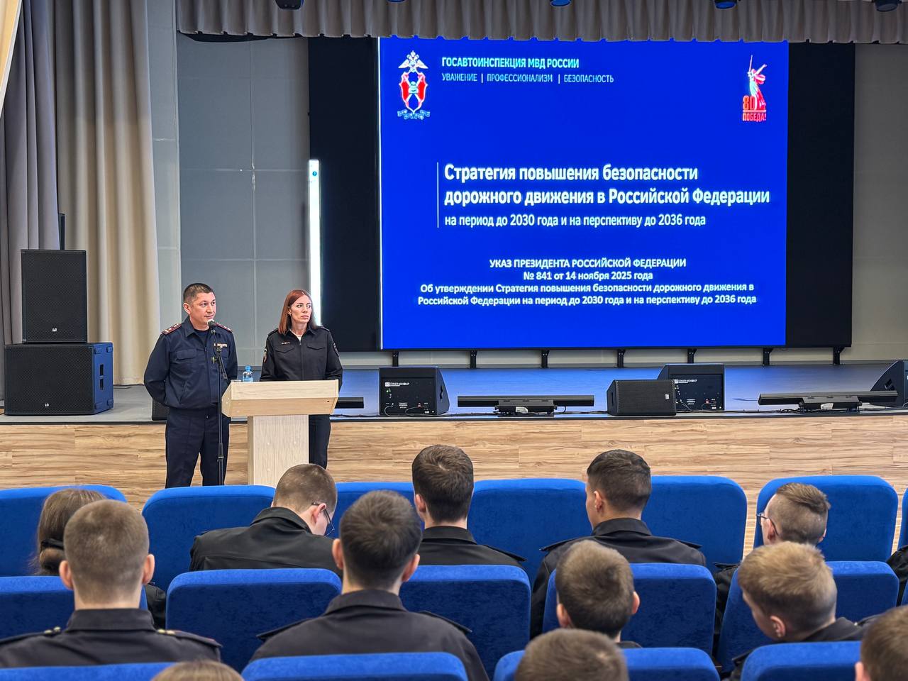 Сотрудники Госавтоинспекции провели профилактическую лекцию для воспитанников кадетского корпуса Следственного комитета Российской Федерации имени В. И. Истомина.
