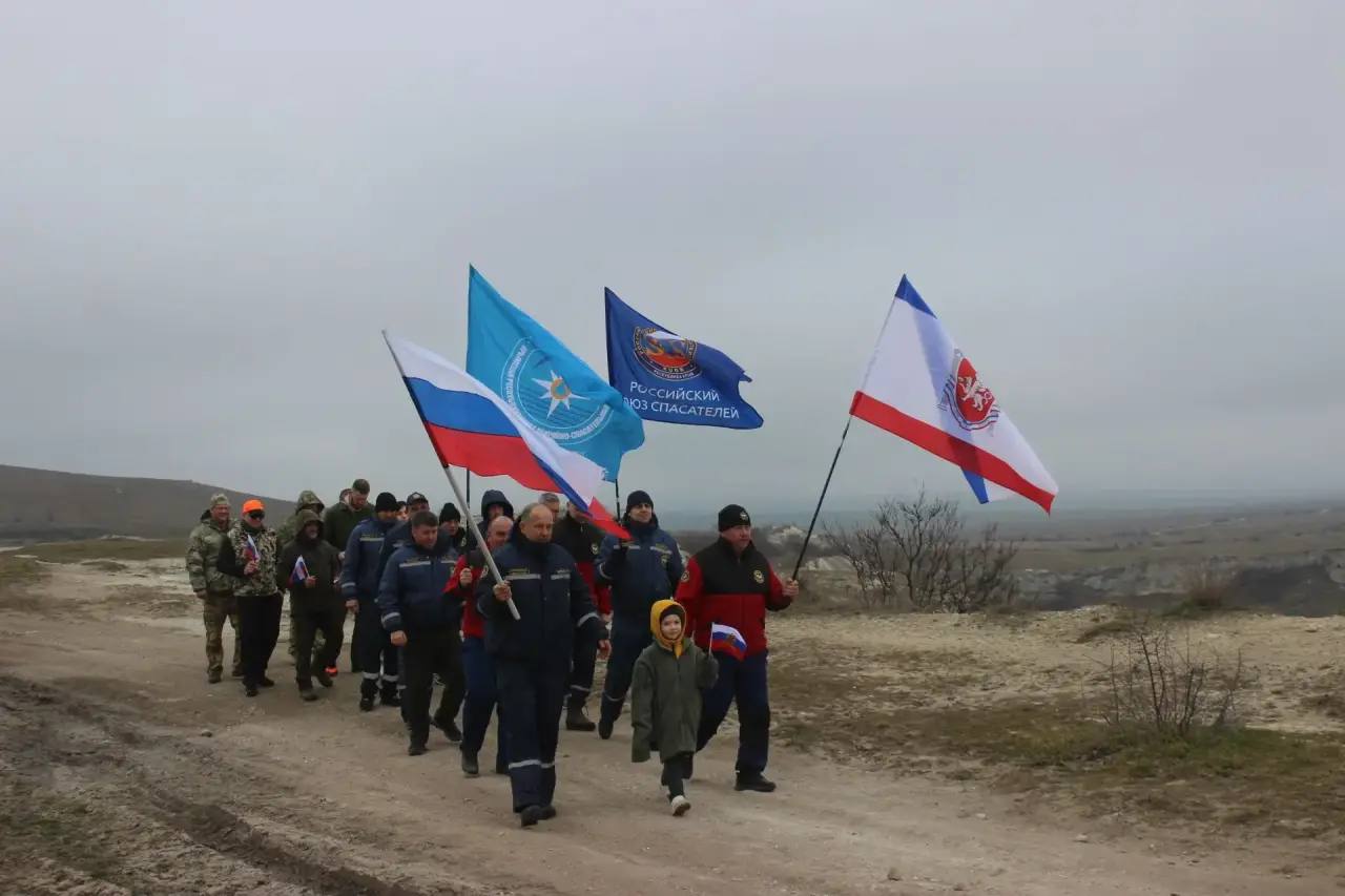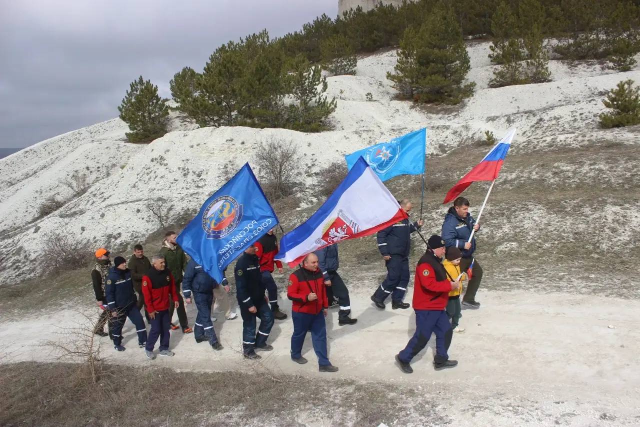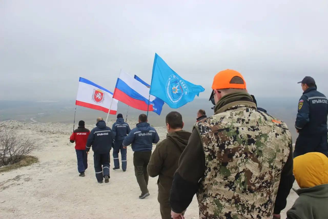 В День Воссоединения Крыма с Россией сотрудники Белогорского аварийно-спасательного отряда ГКУ РК "КРЫМ-СПАС" и Минэкологии Крыма подняли флаги страны и полуострова на вершине Белой скалы!