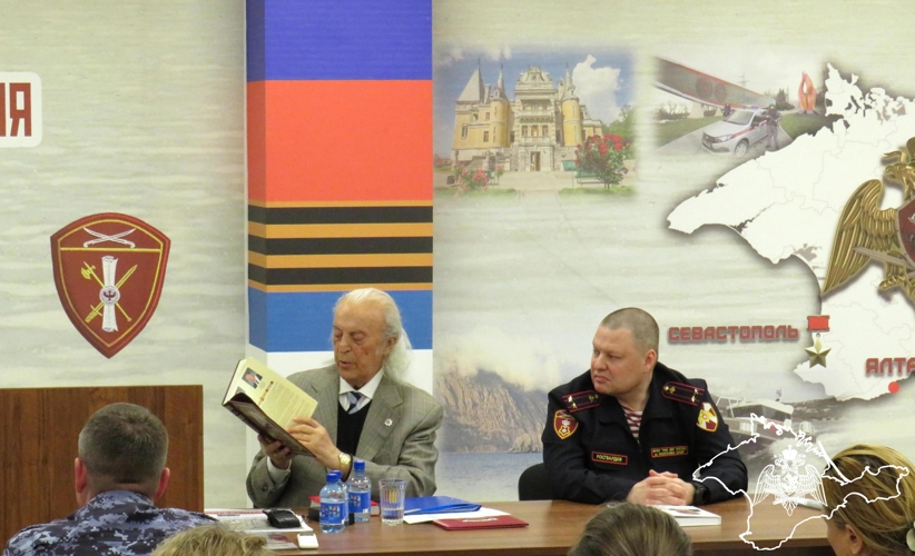 Илья Рахмиэлевич рассказал росгвардейцам о своей жизни и творчестве, о работе над написанием Гимна Росгвардии и Государственного Гимна Республики Крым, а также об интересных людях и фактах, которые сопровождали поэта в его работе над творческими произведениями. Свой увлекательный рассказ мэтр сопровождал цитированием своих авторских стихов, молитв, сонетов, басен, эпиграмм и даже частушек.