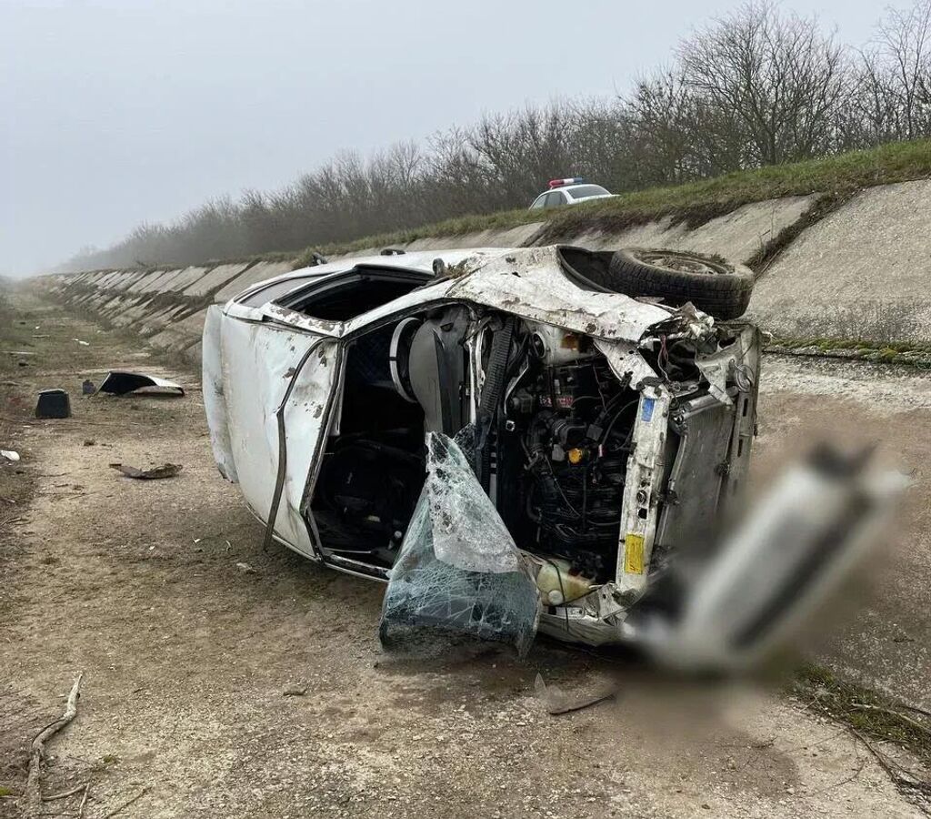 ДТП произошло около 8 утра в четверг на трассе Джанкой – Гвардейское. Предварительно установлено, что женщина-водитель Lada Kalina не учла погодные условия и на скорости съехала с дороги. Авто упало в оросительный канал и опрокинулось.