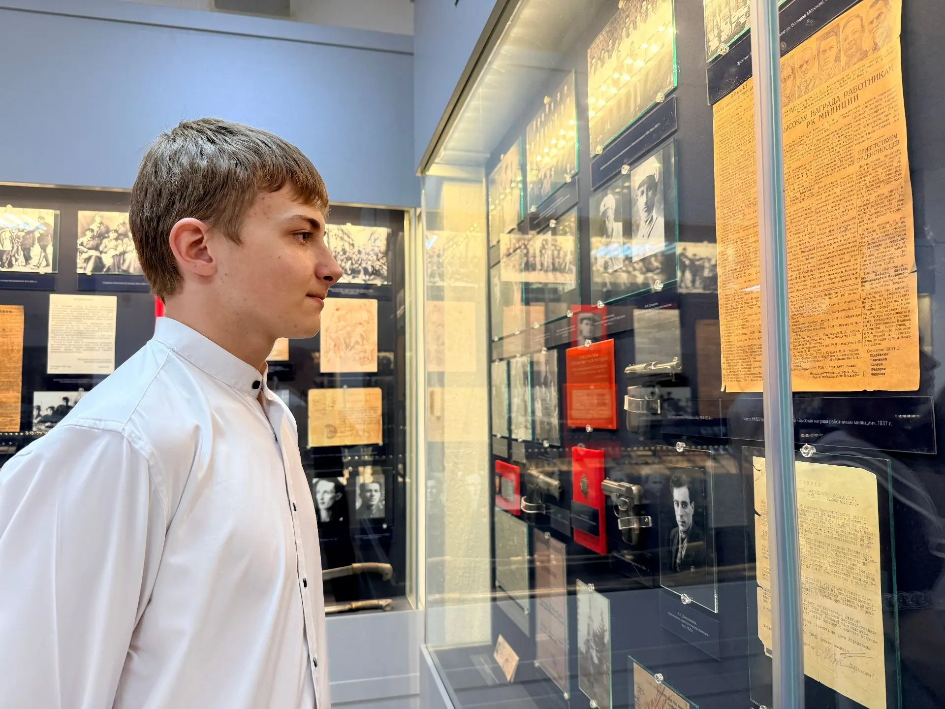 Экскурсию провела главный хранитель фондов музея Ольга Кашицына. Она помогла ребятам погрузиться в историю органов внутренних дел Севастополя в разные годы. Историческое «путешествие» началось с личности Матвея Семеновича Казакевича, полковника милиции в отставке, начальника Крымской милиции в годы Великой Отечественной войны, участника героической обороны Севастополя – идейного вдохновителя и создателя музея милиции.