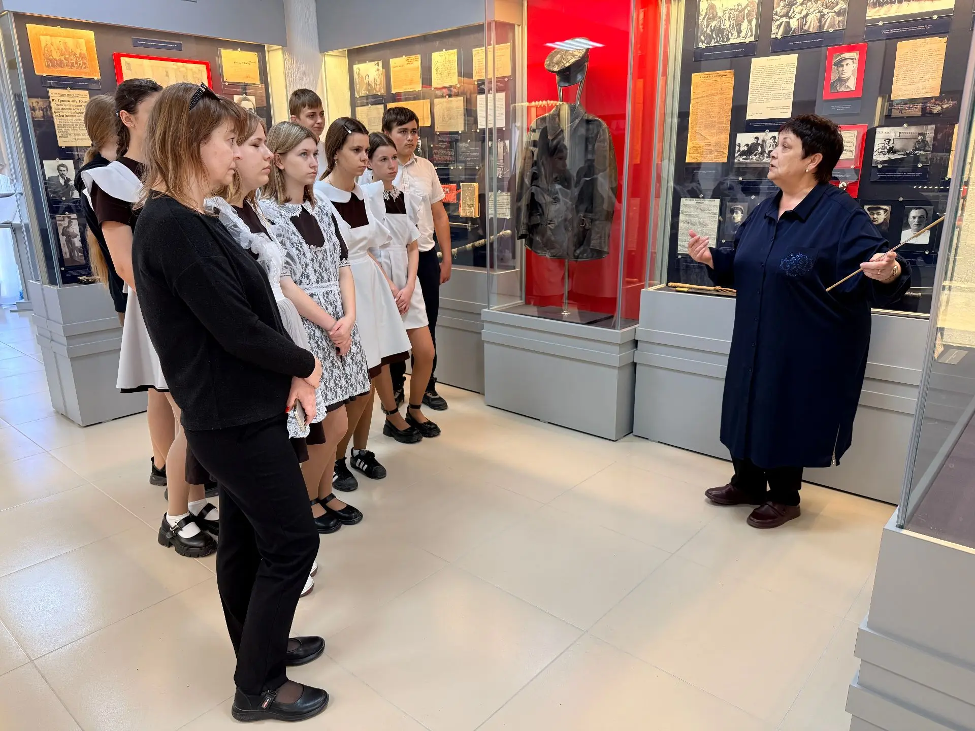 Больше всего подростков привлекло огнестрельное и холодное оружие, представленное на витринах музея. В конце каждый школьник смог вернуться к заинтересовавшим экспонатам и задать свой вопрос экскурсоводу.