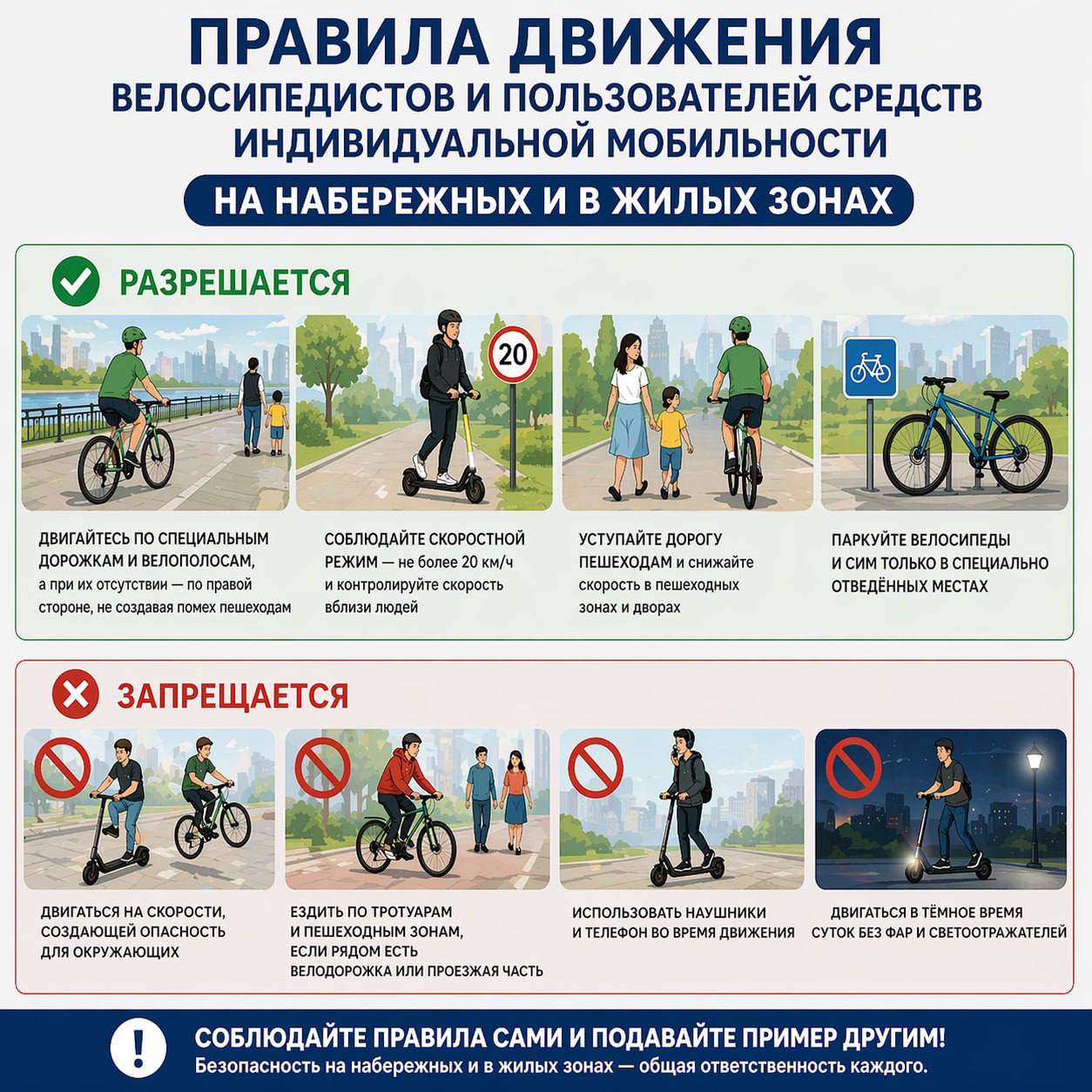 Госавтоинспекция Республики Крым напоминает: на набережных, в парках и дворах одновременно находятся пешеходы, дети, велосипедисты и пользователи средств индивидуальной мобильности. Любое нарушение скорости или манёвров на самокатах и велосипедах может привести к наезду на людей.