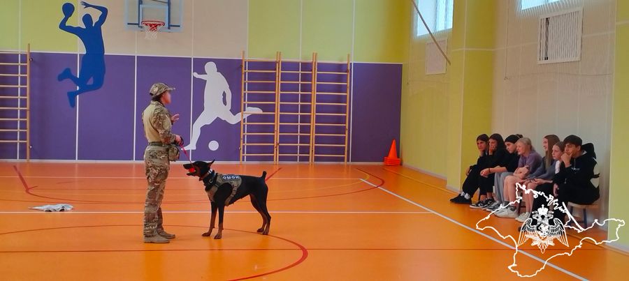 Сотрудники ОМОН «Беркут-С» Главного Управления Росгвардии по Республике Крым и городу Севастополю провели показательное выступление со служебной собакой для школьников 10-й гимназии им. Героя Советского Союза Ефимова Мирона...