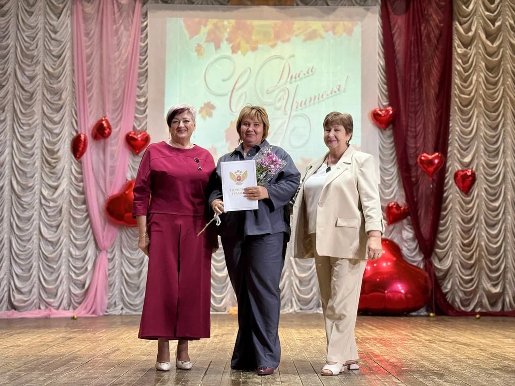 За выдающиеся достижения и многолетнюю верность своему призванию педагоги в ходе концерта были поощрены благодарственными письмами от Государственного Совета Республики Крым, а также грамотами и благодарностями администрации Советского района Республики Крым и Советского районного совета. Почетными грамотами Министерства просвещения Российской Федерации были награждены учитель биологии МБОУ «Советская СШ №2 им.Героя Советского Союза П.П.Исаичкина» Надежда Василакина, и педагог-организатор МБОУ «Некрасовская СШ» Светлана Железная, а учитель географии МБОУ «Советская СШ №1», Марина Аксютец, удостоилась почетного звания «Почётный работник сферы образования Российской Федерации». Кроме этого преподаватели получили памятные сувениры в форме сердец, символизирующих качества доброты, любви, преданности профессии и верности долгу.