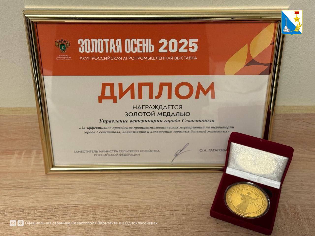 Управление ветеринарии Севастополя наградили золотой медалью на Российской выставке «Золотая осень – 2025»