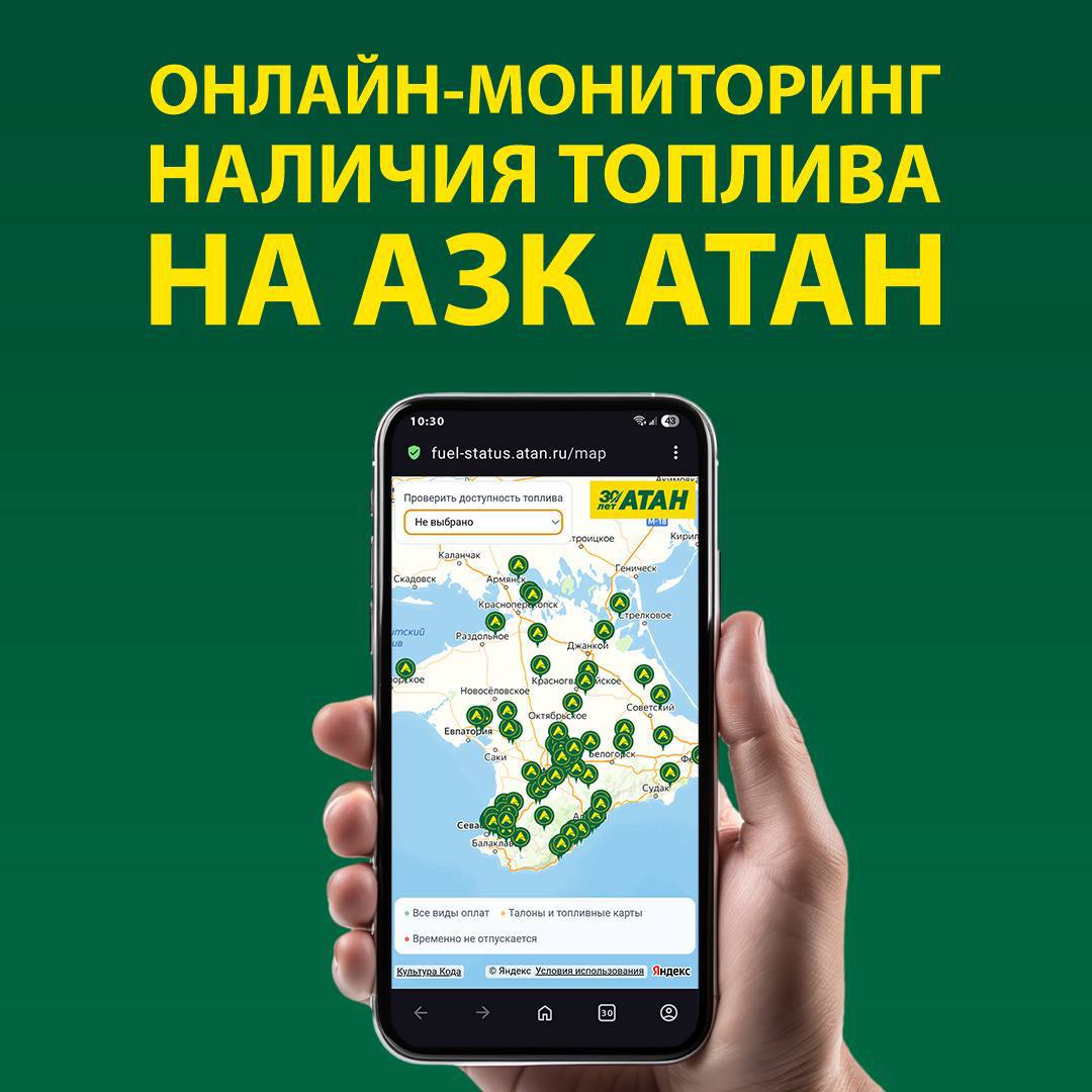 Для Вашего удобства теперь доступен онлайн-мониторинг наличия топлива на АЗС «Атан». С помощью нового сервиса Вы можете в реальном времени отслеживать наличие топлива и планировать заправку в наиболее подходящий момент.