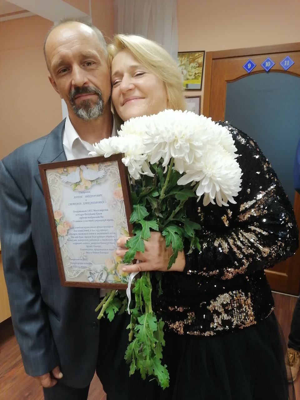 Ялтинский городской отдел ЗАГС с особой теплотой встретил юбиляров семейной жизни – Антона Викторовича и Светлану Александровну Медведевых-Проскуряковых, отметивших своё «серебряное» двадцатипятилетие.