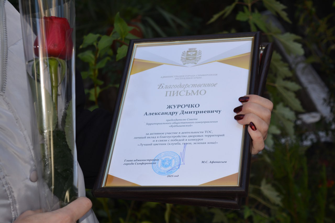 14 октября в Симферополе состоялось чествование победителей муниципального конкурса «Лучший цветник». Одним из лучших признан ТОС «Куйбышевкий» (ул. Куйбышева, 13).