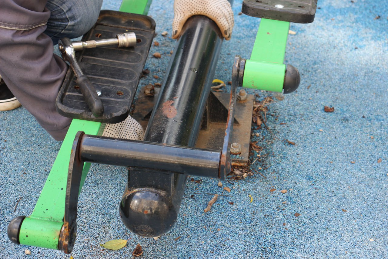 Такая работа проводится регулярно. На основе результатов обследования детских комплексов и спортгородков составляется перечень объектов, подлежащих ремонту или замене. Определяется объем работ по приведению оборудования в надлежащее состояние. Неисправные горки, карусели, качели должны быть отремонтированы. Не подлежащее ремонту оборудование необходимо демонтировать.