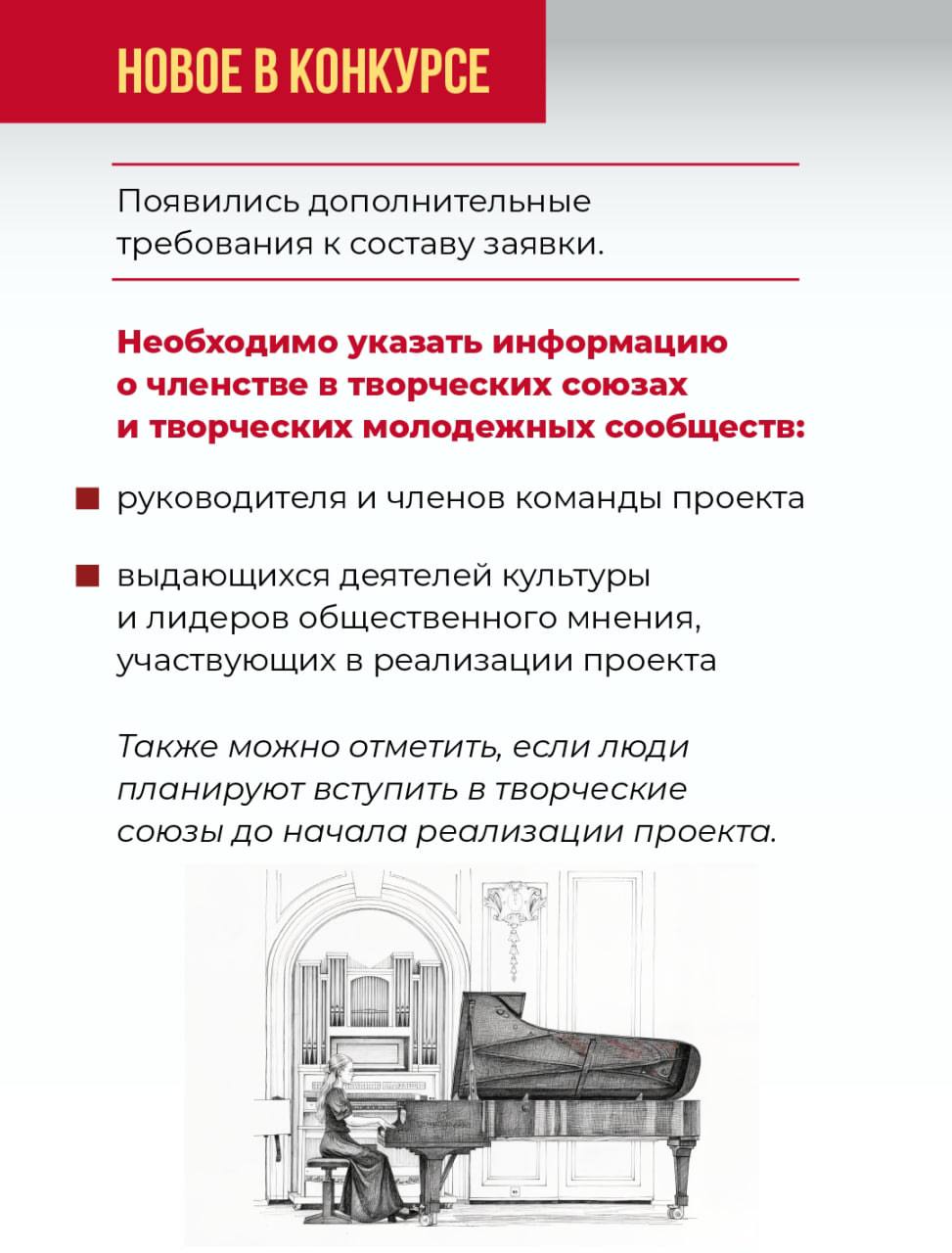 Теперь в заявке необходимо указывать информацию о членстве в творческих союзах или молодежных творческих сообществах.