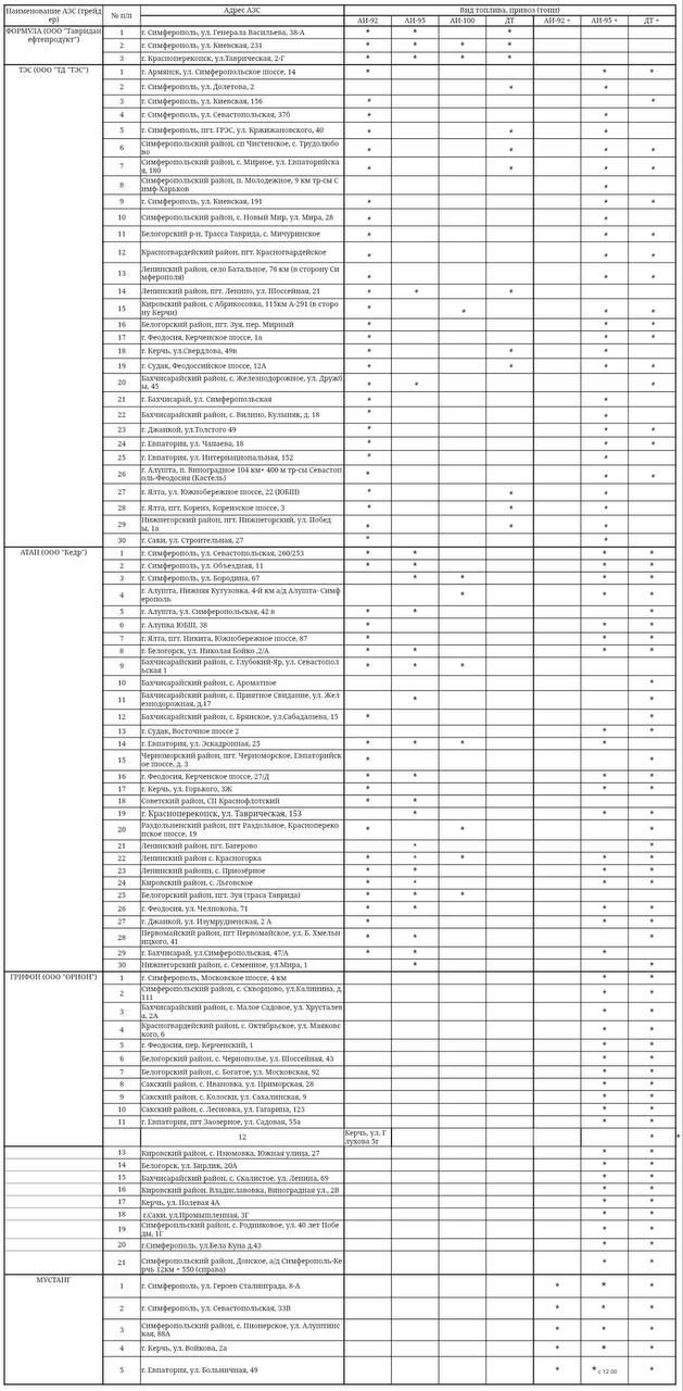 На сегодняшний день свободная реализация топлива осуществляется на 89 автозаправочных станциях Республики Крым. Об этом сообщил председатель Совмина РК Юрий Гоцанюк. Топливо в наличии на АЗС Симферополя, Алушты, Бахчисарайского и...