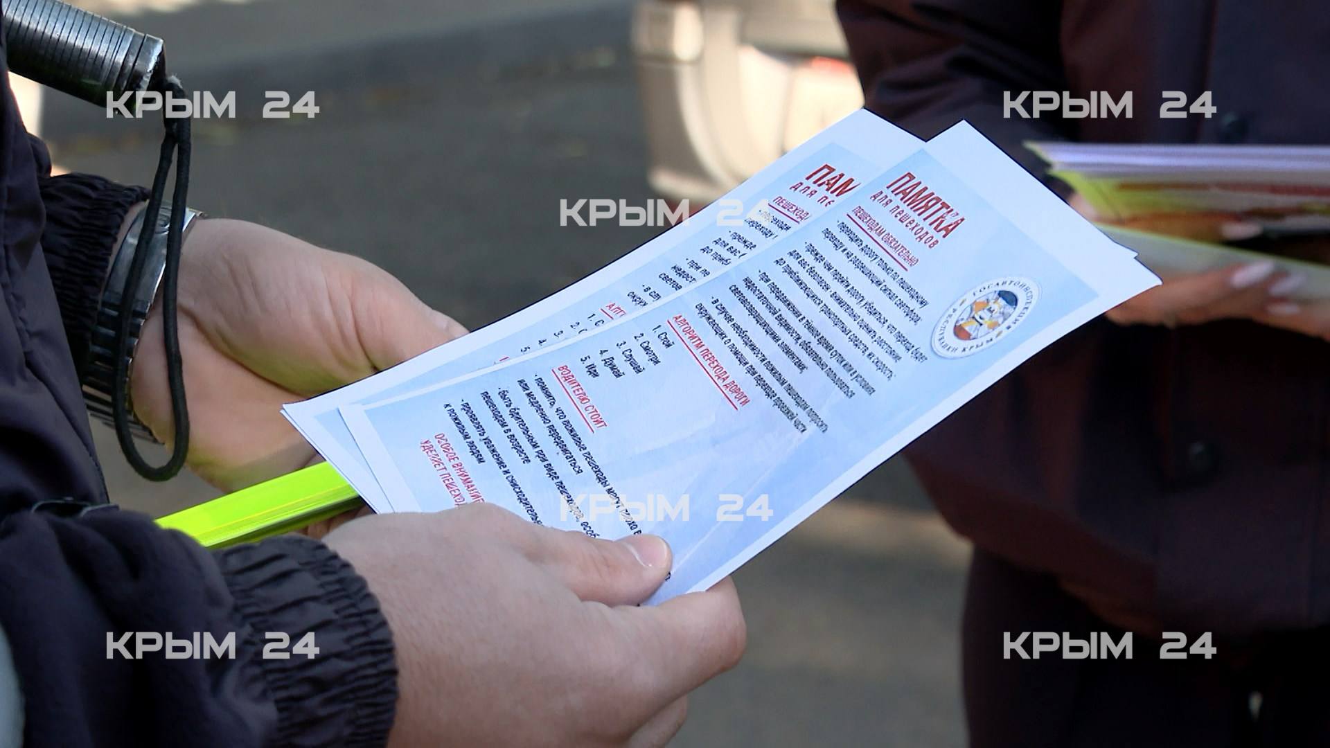 Дополнительно всем гражданам раздают памятки. Кроме того — светоотражающие браслеты, чтобы пешеходы были заметнее в тёмное время суток.