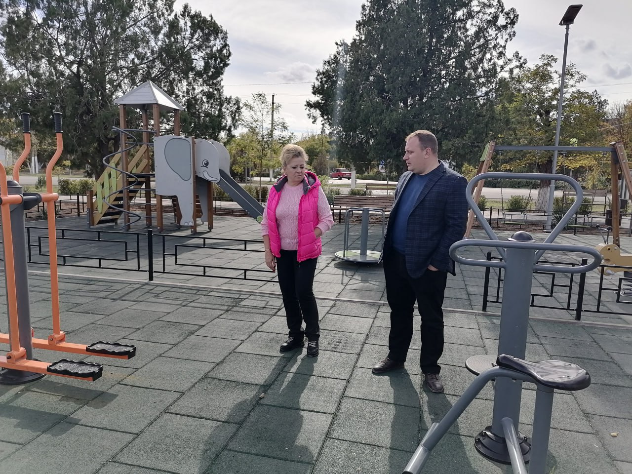 Осмотр начали с объекта благоустройства возле памятника им.В.И.Ленина, который осуществлялся в рамках инициативного бюджетирования.